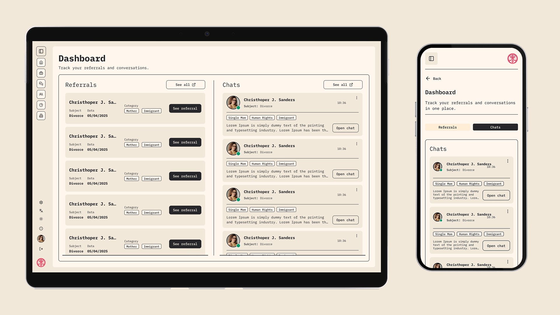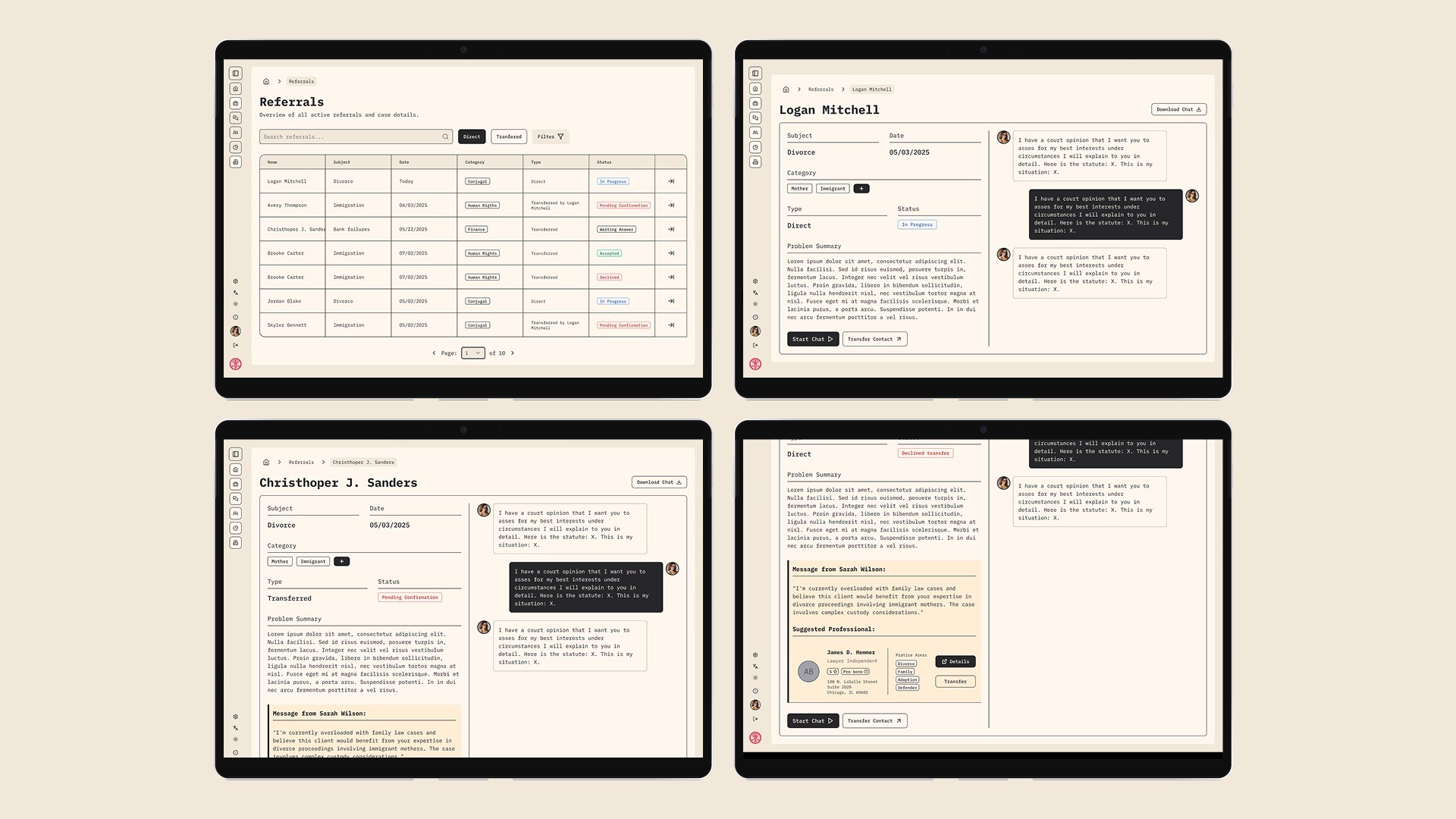 Atender a Múltiplos Públicos: A plataforma precisava servir tanto o usuário final em busca de ajuda quanto os advogados que se filiam ao serviço, cada um com necessidades distintas.