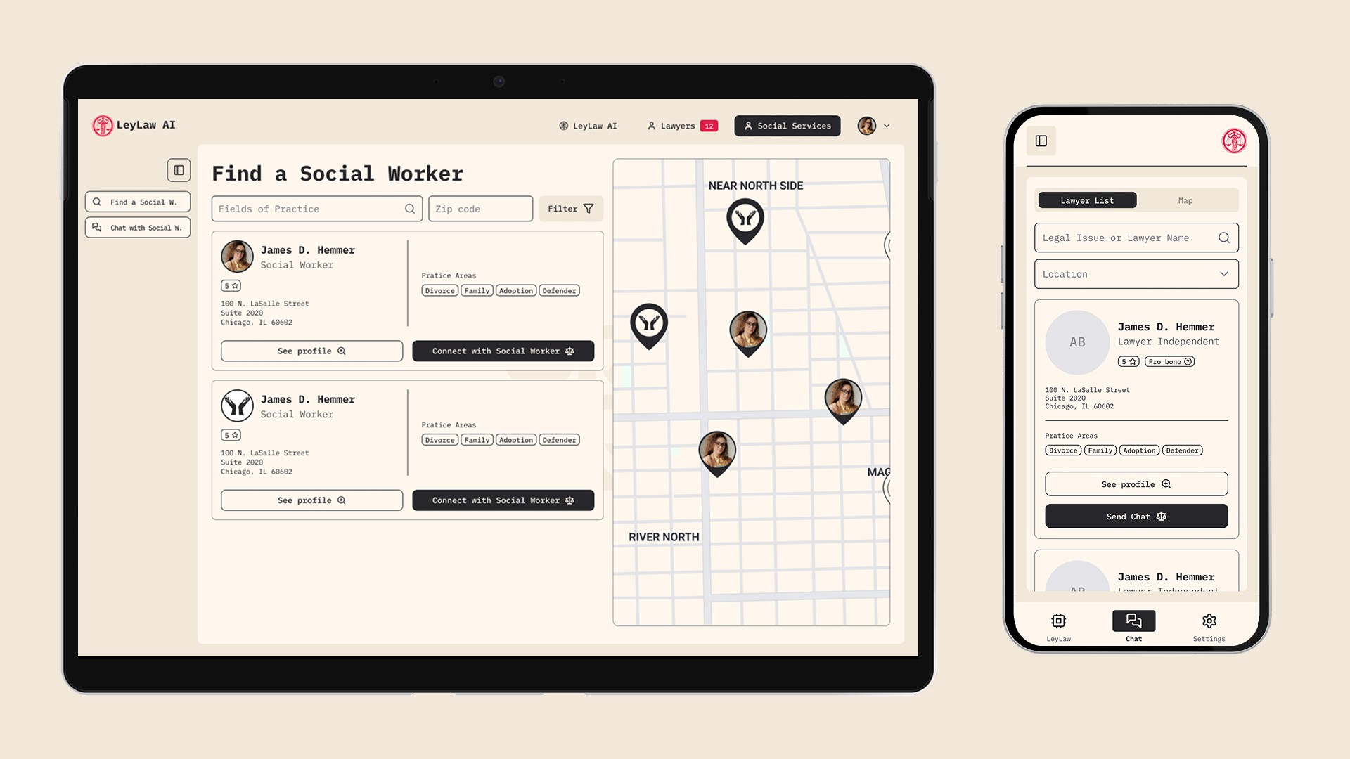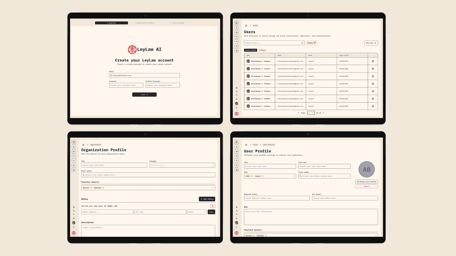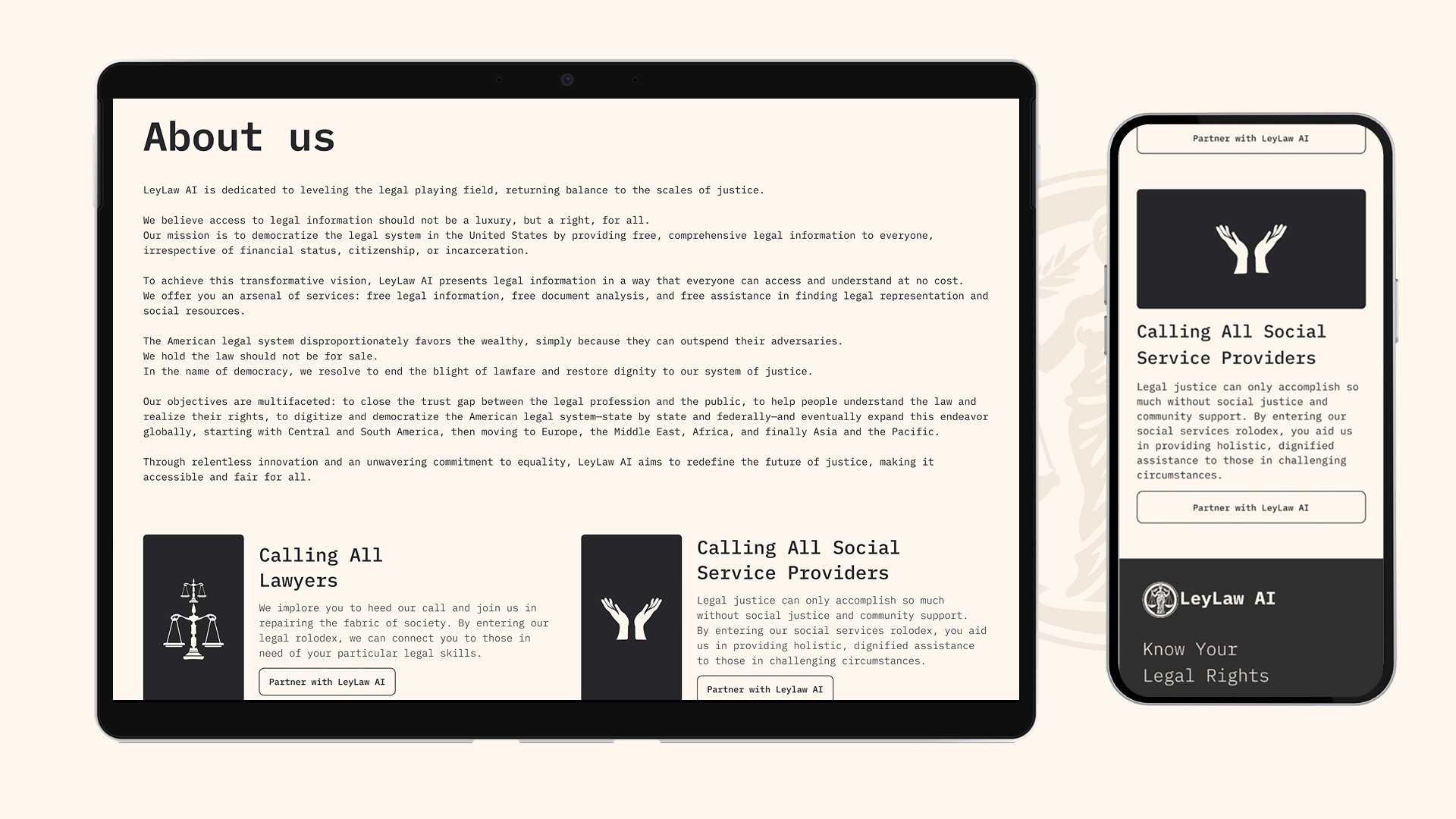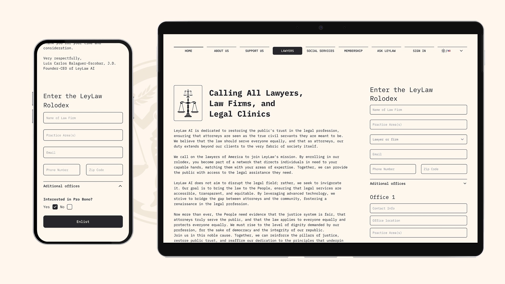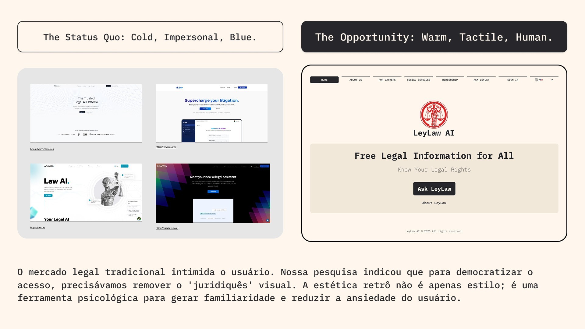 Para o lançamento da LeyLaw no mercado, o desafio era criar uma experiência digital completa — website e aplicativo — que fosse ao mesmo tempo inovadora e acolhedora. O design precisava resolver três questões centrais: