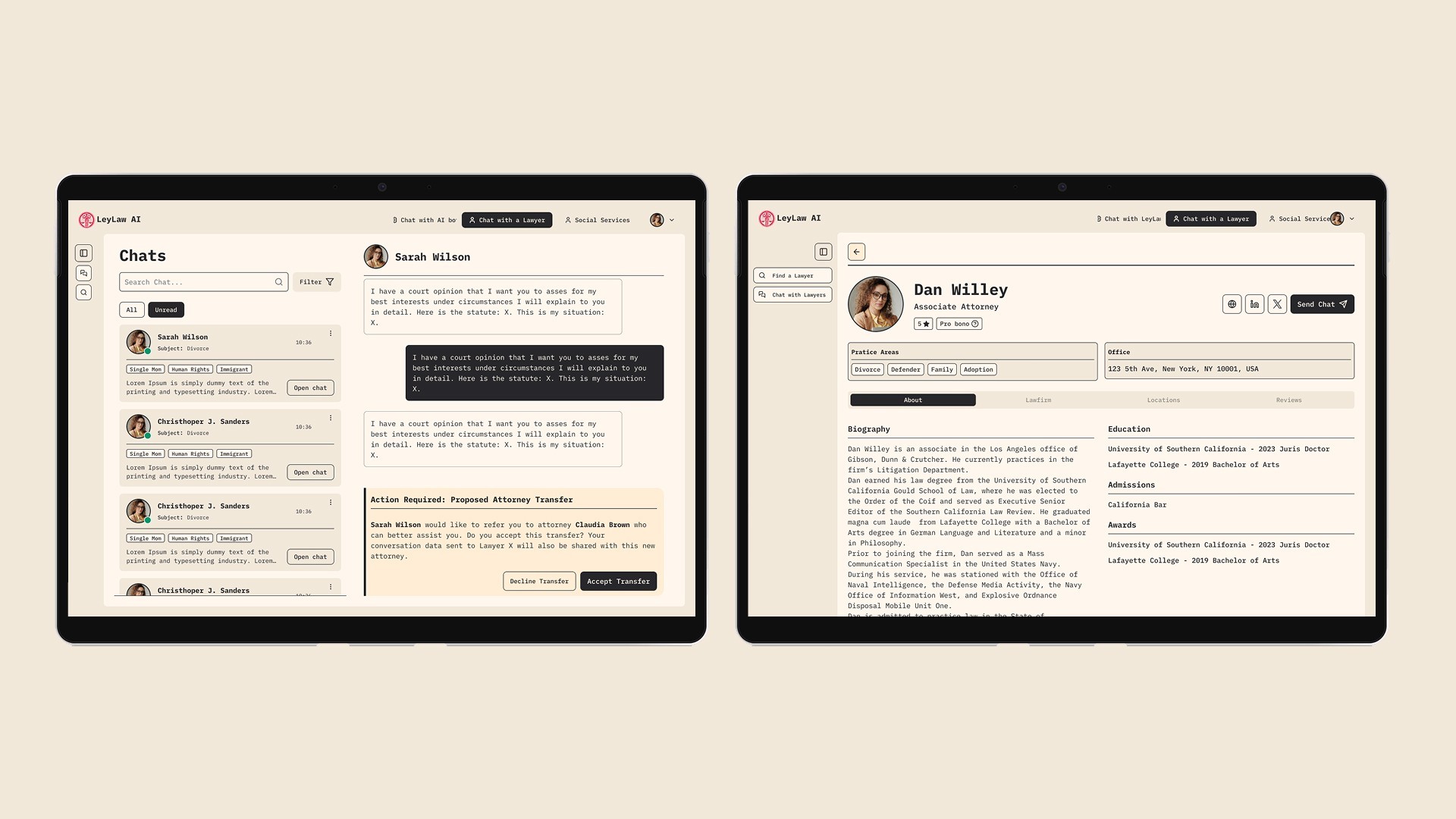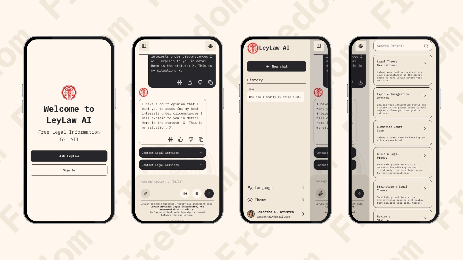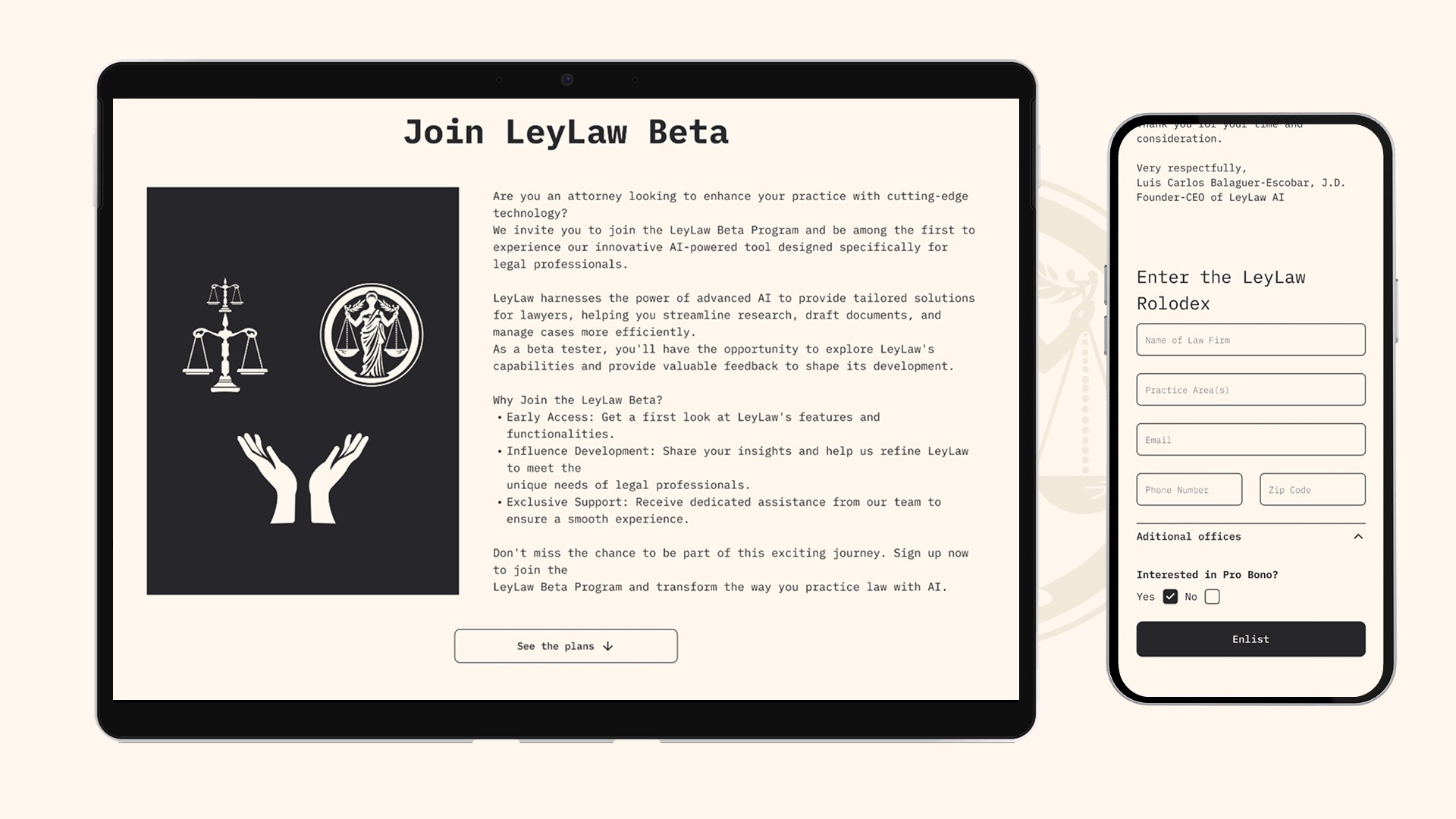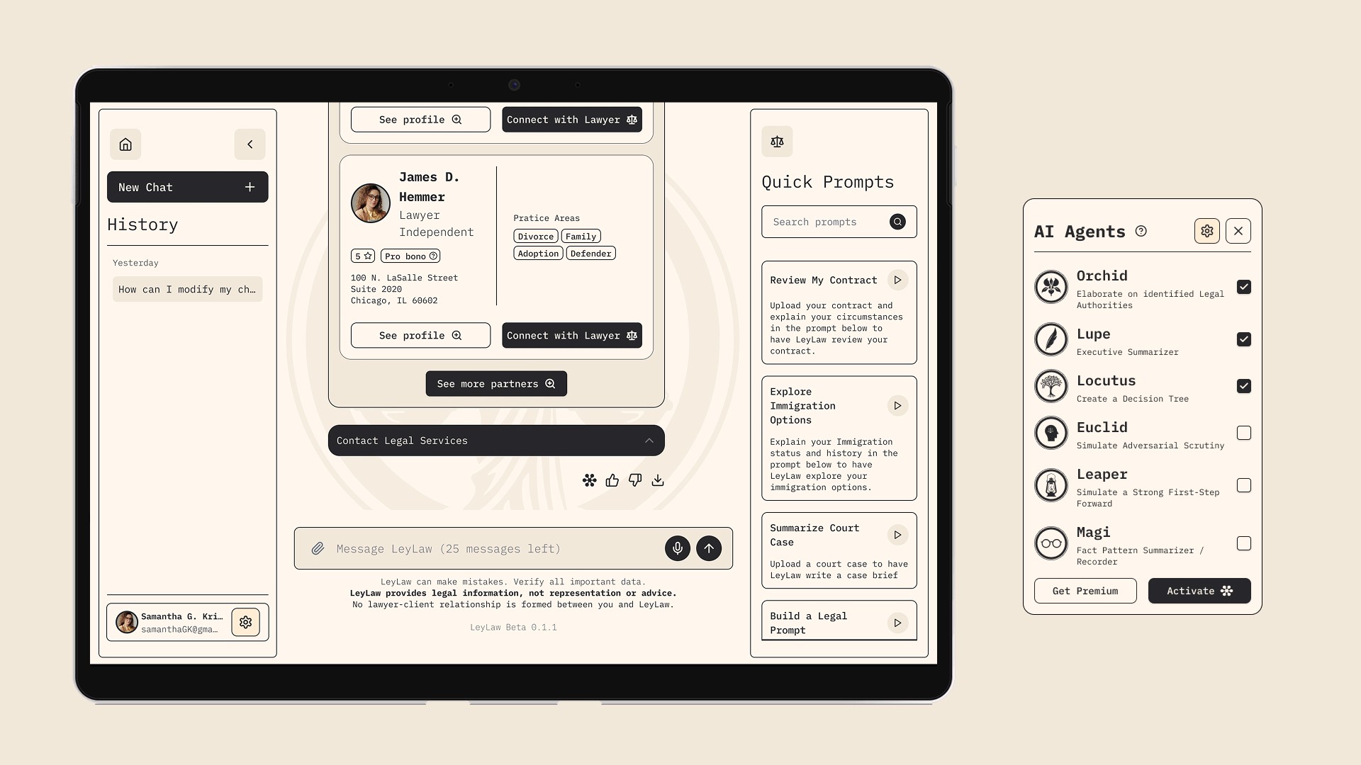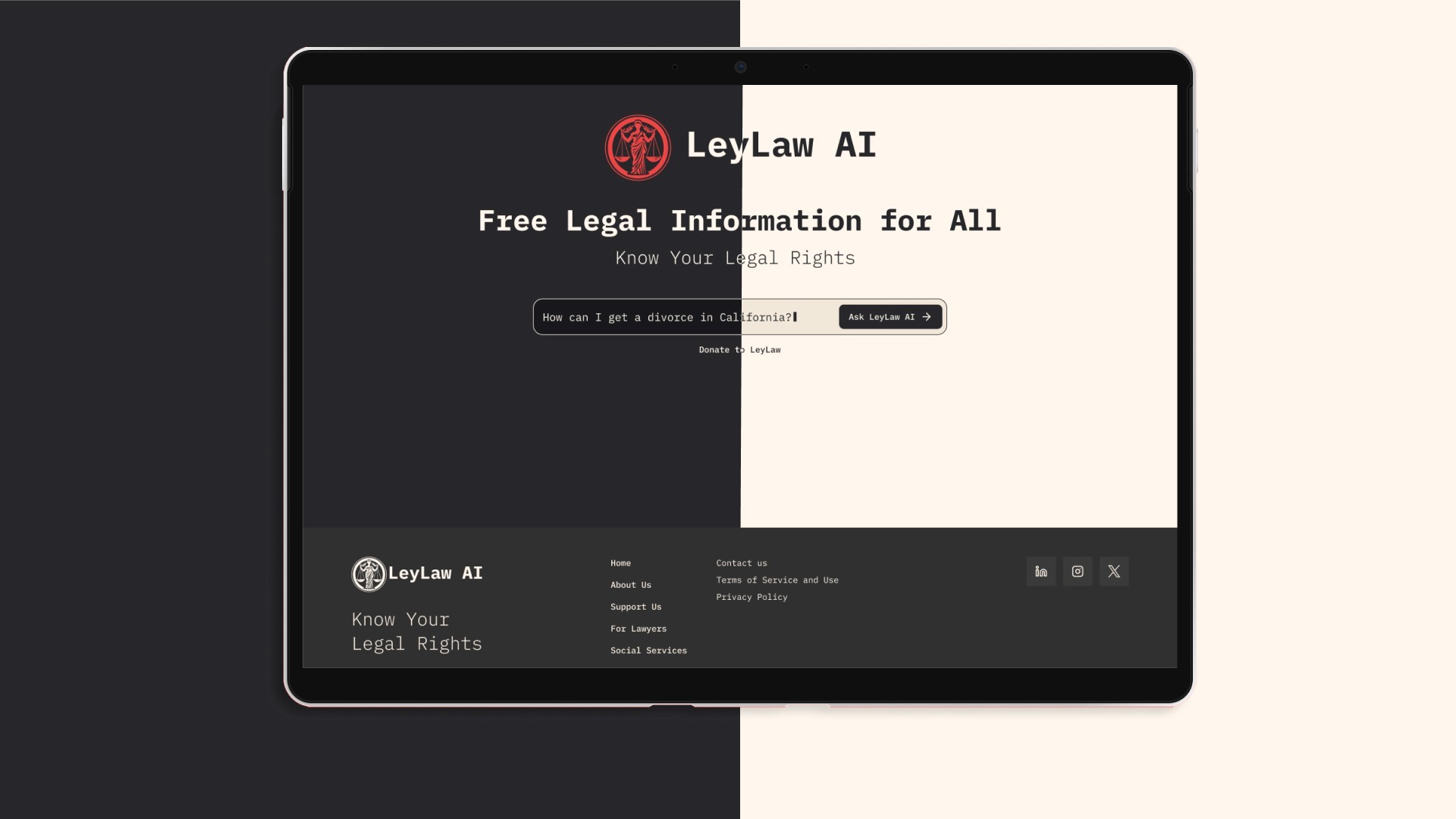 A LeyLaw AI é uma startup americana com a missão de democratizar o acesso ao sistema legal nos Estados Unidos. Utilizando inteligência artificial, a plataforma oferece informações legais gratuitas e abrangentes, conectando pessoas que precisam de ajuda com advogados qualificados.