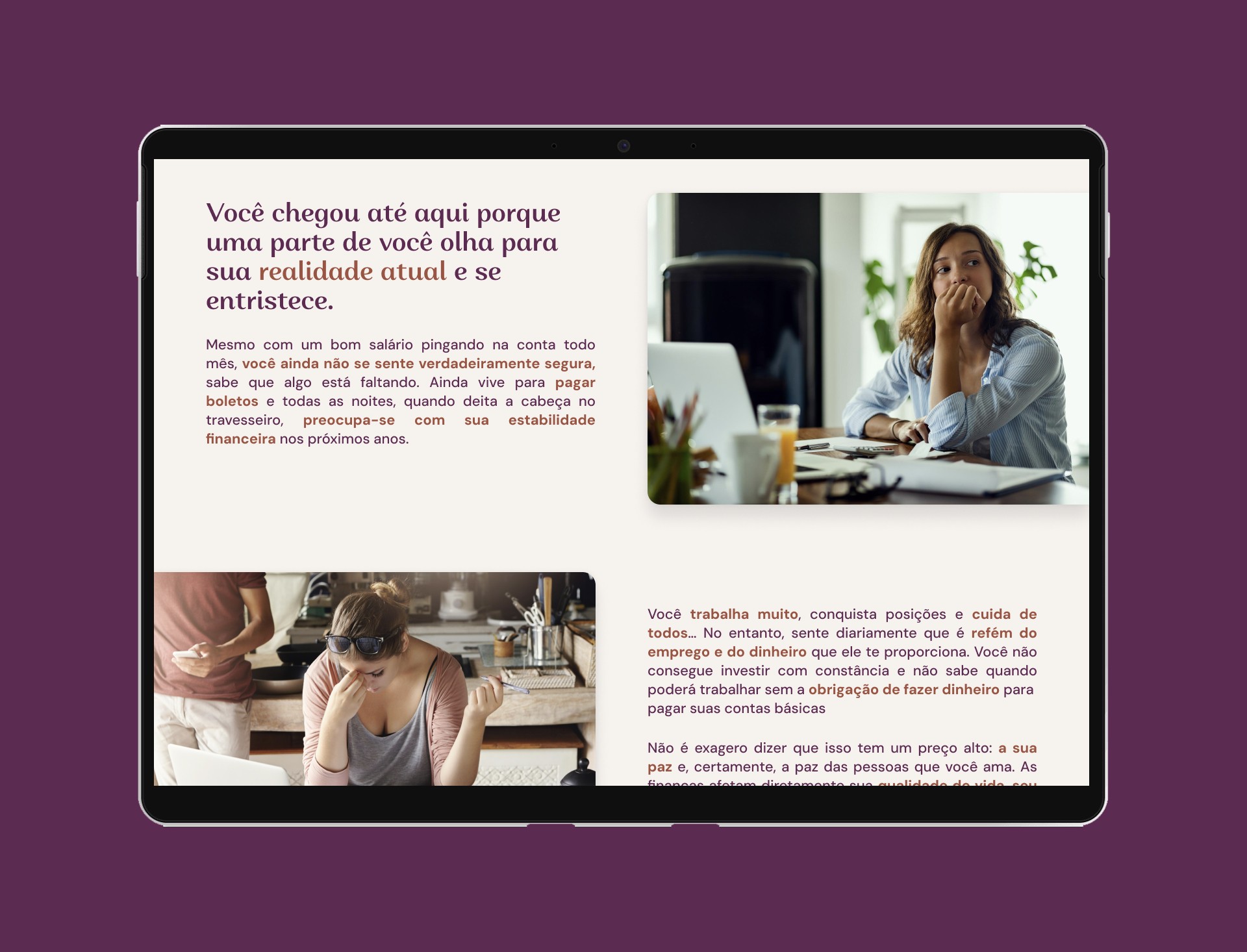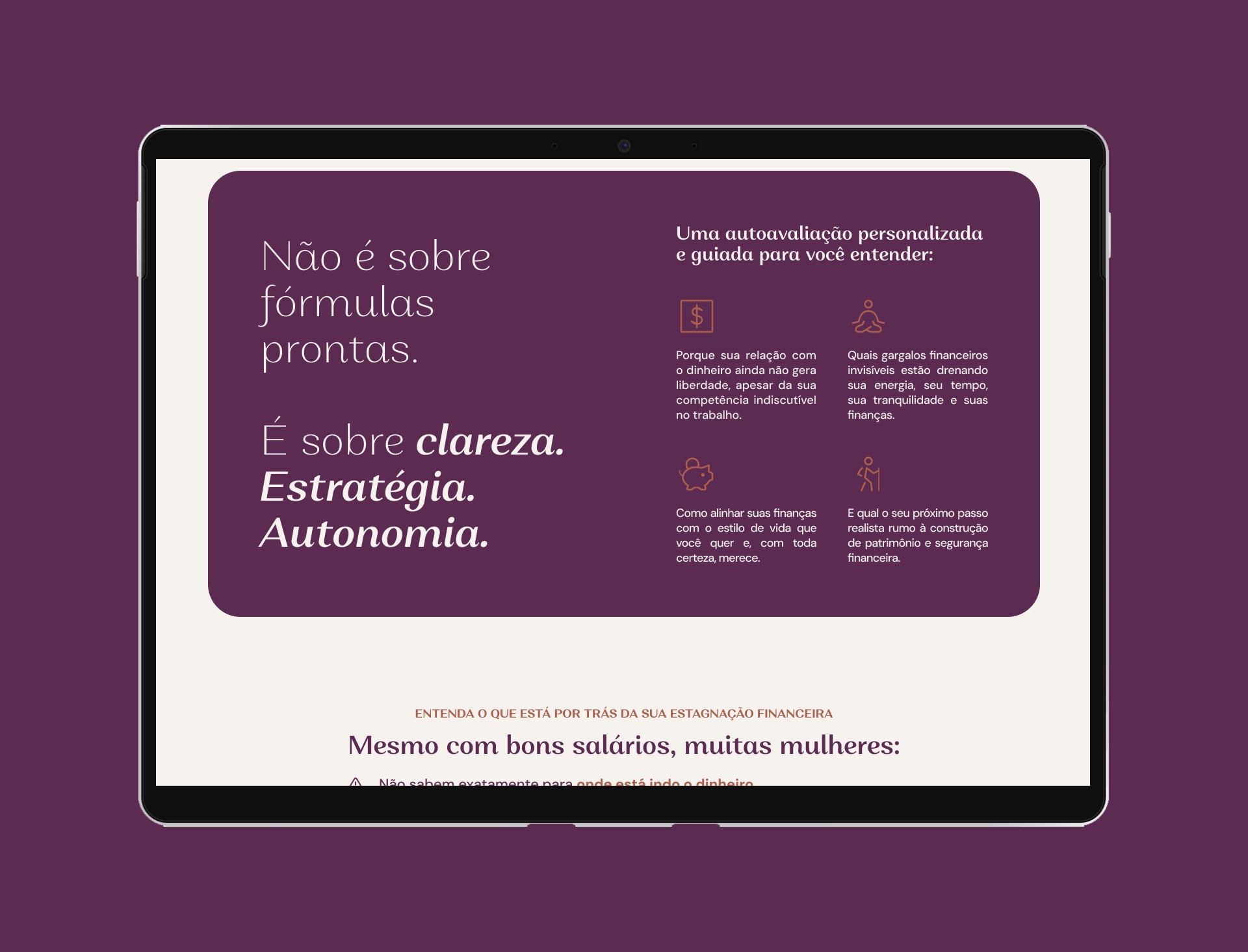 Geração de Empatia: A seção de abertura foi criada para gerar identificação imediata, abordando as dores e perguntas comuns do público-alvo.